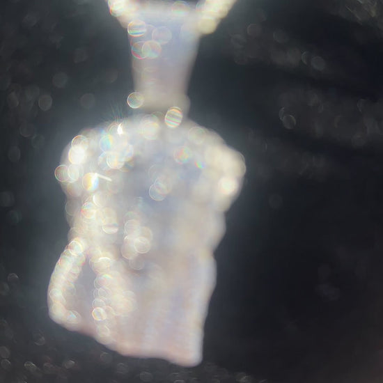 This stunning Jesus pendant is a lifetime piece that exudes elegance and luxury. Made from solid 925 sterling silver, it will never turn green and its color will last for many years. Adorned with 200 micro-paved handset CZ for a total of 2ct, including a crown of thorns set with gorgeous baguette, princess, and marquise diamonds, this pendant is truly a work of art. Measures roughly 0.75" by 1" and weighs approximately 7 grams. A timeless and tasteful addition to any collection.