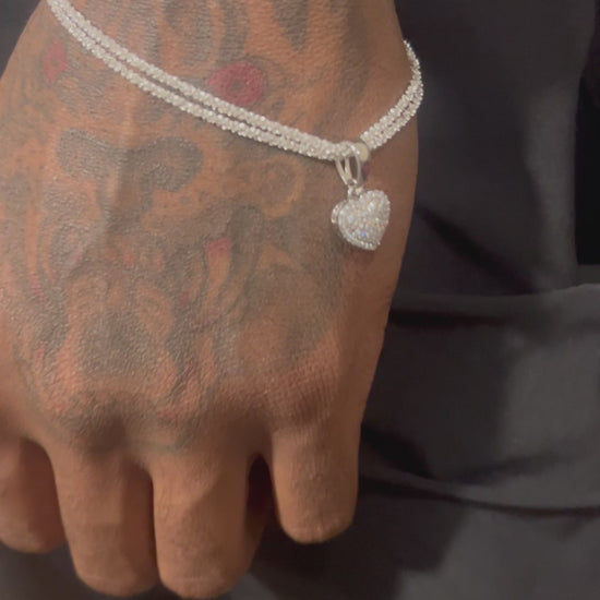 Real Solid 925 Sterling Silver Diamond Cut 3mm Sparkle Rope Bracelet 6-8.5" Long - MOISSANITE 925 Silver 14K Gold Iced Small Ladies Heart Shaped Love Pendant Charm