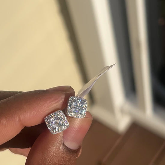 Introducing these stunning and stylish earrings made of real solid 925 sterling silver, embellished with icy cubic zirconia stones. The earrings come in a square shape and feature a screw back closure for a secure fit. Perfect for both men and women, these earrings are available in versatile silver color and feature a hip hop theme.
