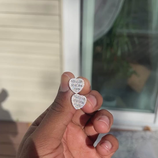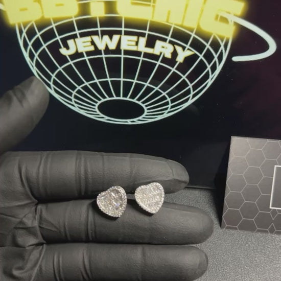 Iced Heart Stud Earrings Men's Ladies Baguette CZ